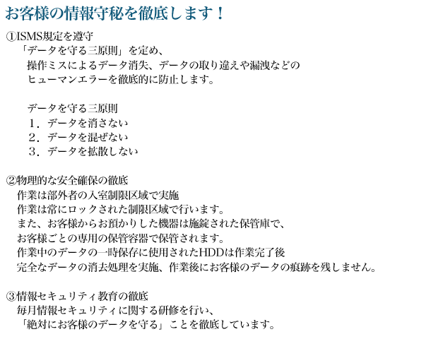 <特急データ復旧 ウィンゲット(WinGet) 東京オフィス>【特急データ復旧 秋葉原】 【特急データ復旧 渋谷】 <特急データ復旧 ウィンゲット(WinGet) 主要オフィス>【特急データ復旧 札幌】 【特急データ復旧 大阪駅前】 【特急データ復旧 神戸】 【特急データ復旧 福岡】 【特急データ復旧 大治ラボ】 |