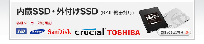 Western Digital、Crucial、Samsung、Sandisk、東芝など、様々なSSDの対応をしています。