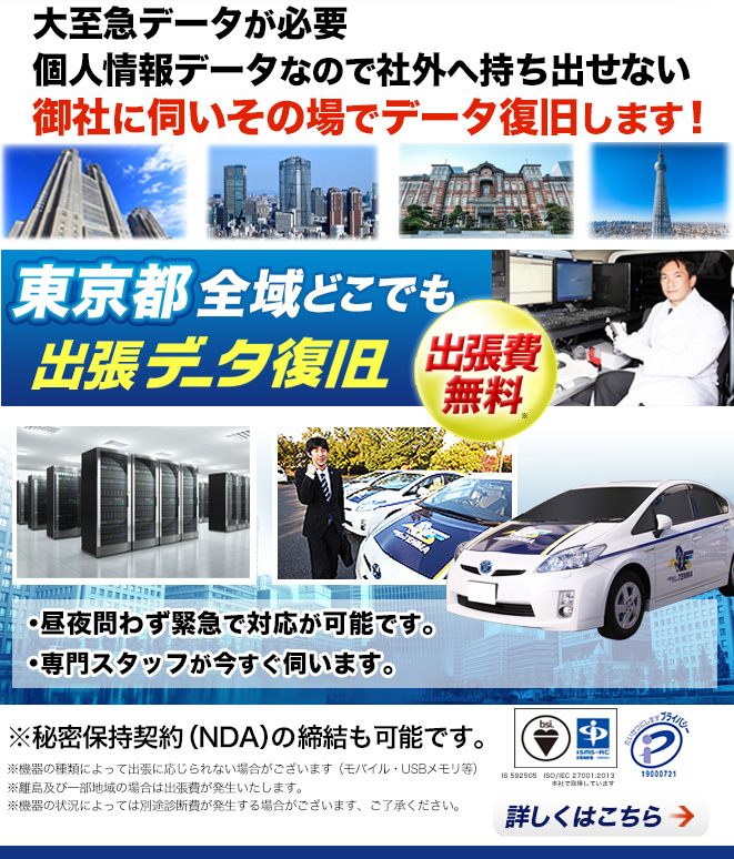 お急ぎの場合は、全国主要都市にデータ復旧機材を配備したオフィスがございますので、即日復旧が可能です。