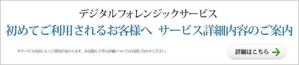 一つでも多くの確かな証拠データを割り出すために、信頼の技術力を持った当社をお選びいただくことをおすすめいたします。