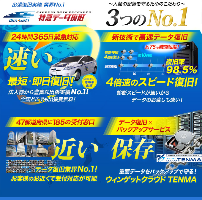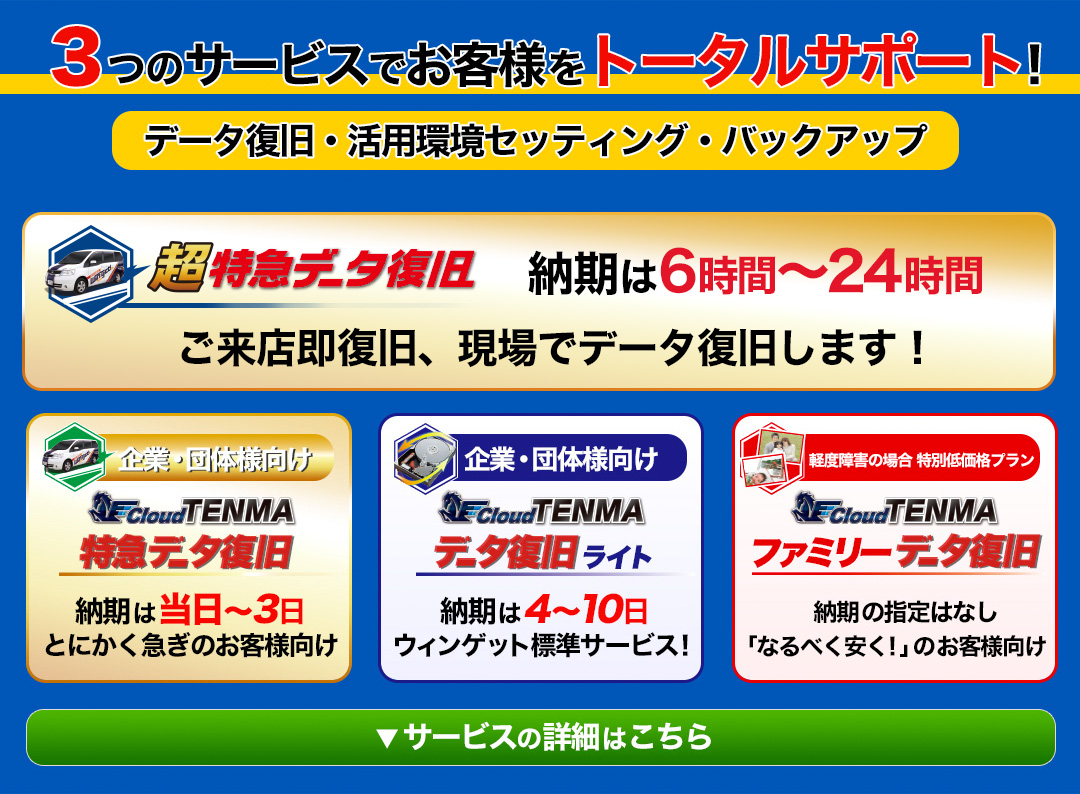 お客様は、データ復旧に関し、いくつかの会社に電話をして復旧時間についてお調べになったそうです。その際、他社では、復旧に1週間程度掛かるところばかりだったそうですが、弊社、「特急データ復旧のWinGet」だけ出張で当日復旧が可能とのことで、今回のご依頼となりました。