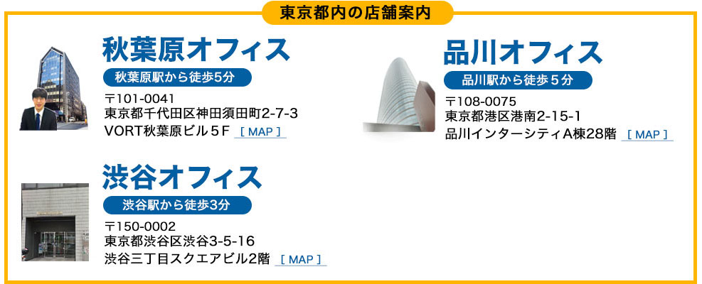データ復旧の受付は、東京都内12箇所にある受付窓口にて対応できます。特に秋葉原オフィスは、都内の店舗の中でも1番機材設備が充実しているため、いち速い対応が可能です。