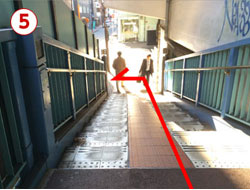 和民様の手前にある細い道に入って頂くと、「神田ふれあい橋」が見えてきますので、そちらを渡ります。