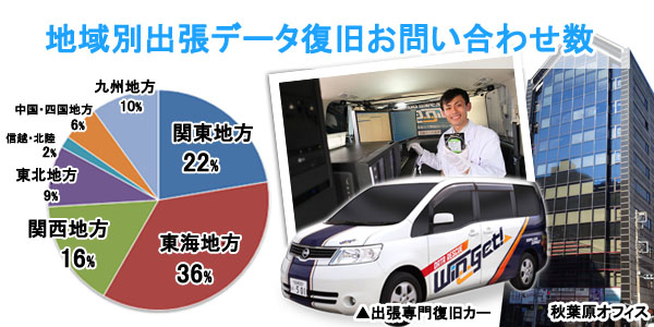 ウィンゲットはよりお客様の近くでデータ復旧を行うため、全国各地にオフィス・受付センターを展開しています。機器が故障し、大切なデータが失ってしまった等でお困りの際、特急で対応致しますので御相談下さい。