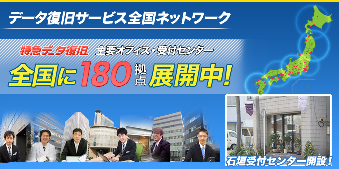 データ復旧の受付・診断が出来る拠点の数が180件になりました