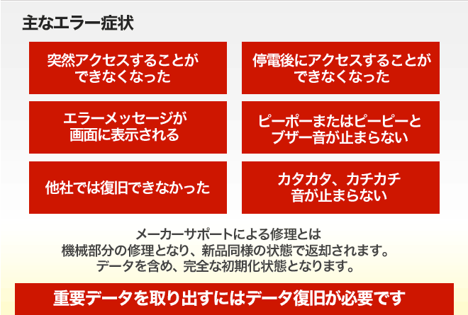 症状が悪化して重要なデータを復旧できなくなってしまう場合があります。